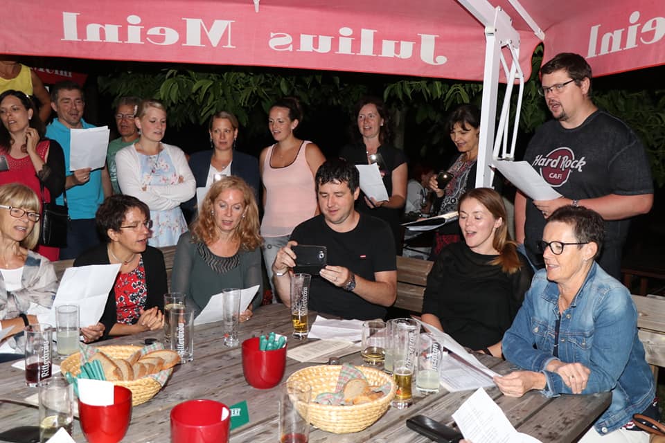 Im Anschluss an die Messe in Oberndorf hat uns unsere Maria anlässlich ihres 30. Geburtstags auf eine gemütliche Jause zum Wastlbauer eingeladen. Lecker! Natürlich darf da auch ein umgetextetes Lied nicht fehlen: zur Melodie "Über den Wolken" haben wir Maria ein ganz persönliches Ständchen gesungen. Danke, Maria, für diese tolle Feier!